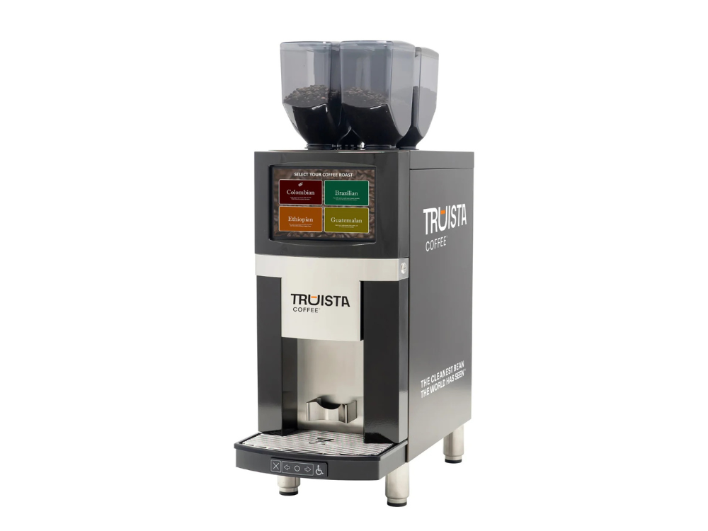 This is fresh-ground, specialty-grade coffee (Truista Coffee), brewed cup-by-cup in under 30 seconds, with absolute consistency and minimal operational burden.