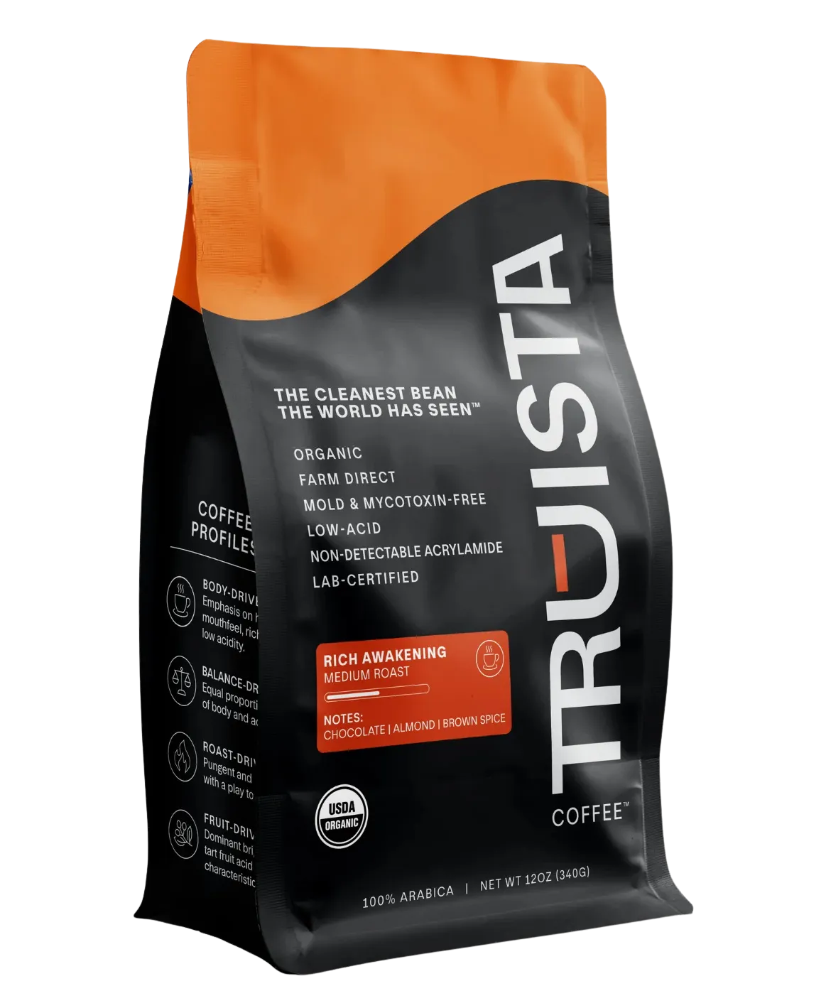 At Truista, purity is not a claim. It is a certification. Every bag is crafted through our proprietary acrylamide reduction process verified by ISO accredited labs, with 381+ contaminants tested in every batch. Your bag’s individual lab report is linked through the QR code on the back so you can see the exact results for the coffee in your hand. A bag of our incredible Rich Awakening roast is included with this equipment.